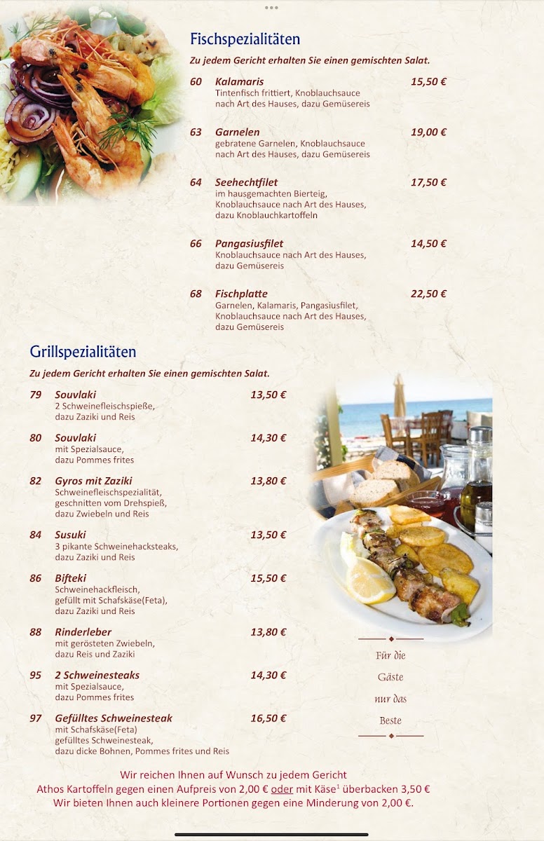The menu at Neon bei Kostas is a celebration of fresh ingredients and innovative recipes. Diners can expect an array of dishes, each crafted with care and presented beautifully. Highlights include mouthwatering grilled specialties and flavorful vegetarian options, ensuring there's something for everyone.
